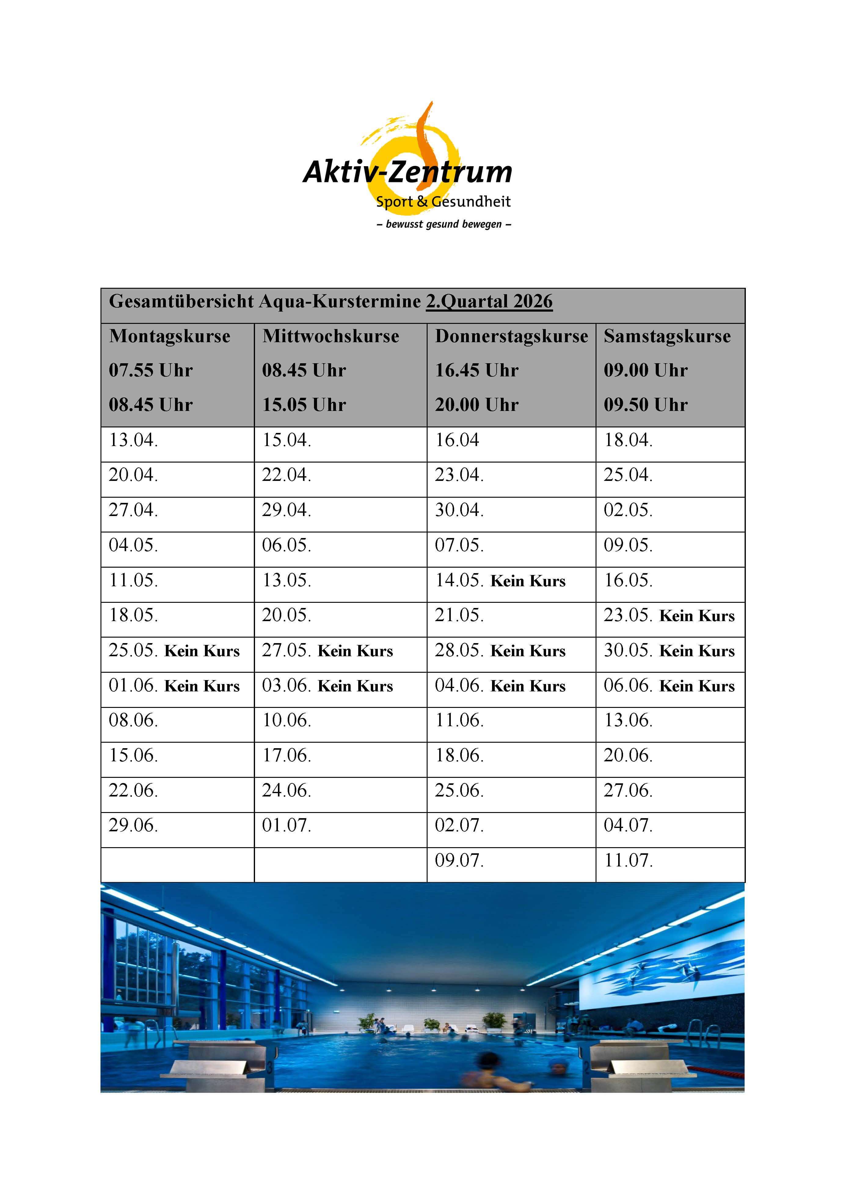 Aktuelle Gesamtübersicht Aqua-Kurstermine